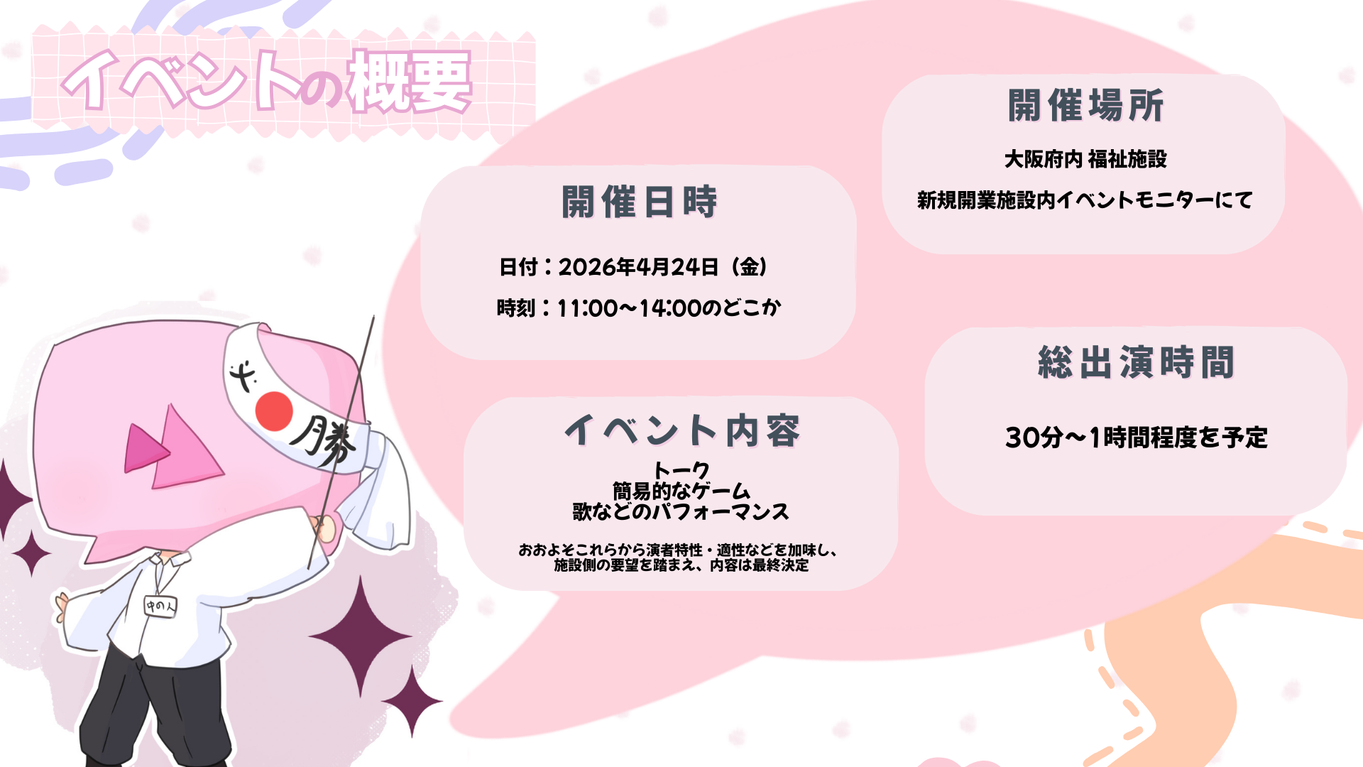 トーク・ゲーム・歌などを交えた楽しい時間を提供する企画として実施予定です。