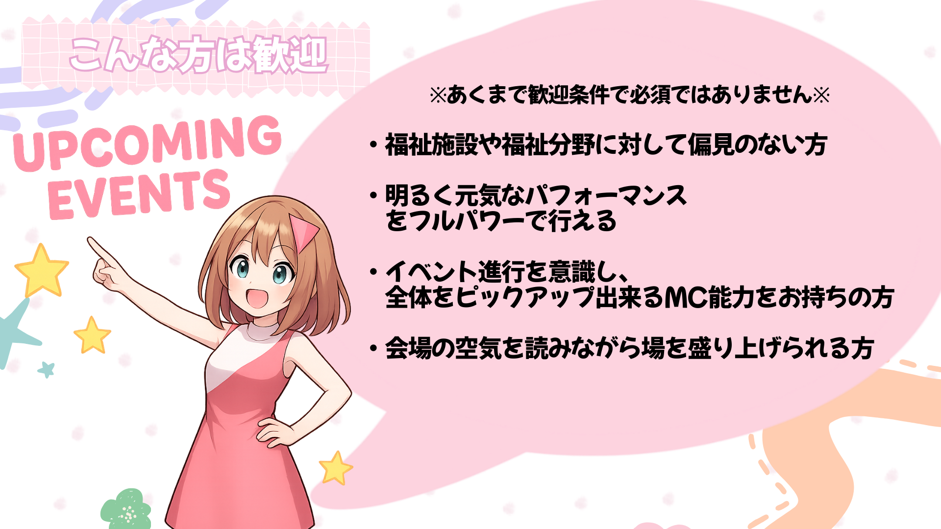 利用者様に笑顔を届けるイベントを一緒に作っていただける方を募集しております。